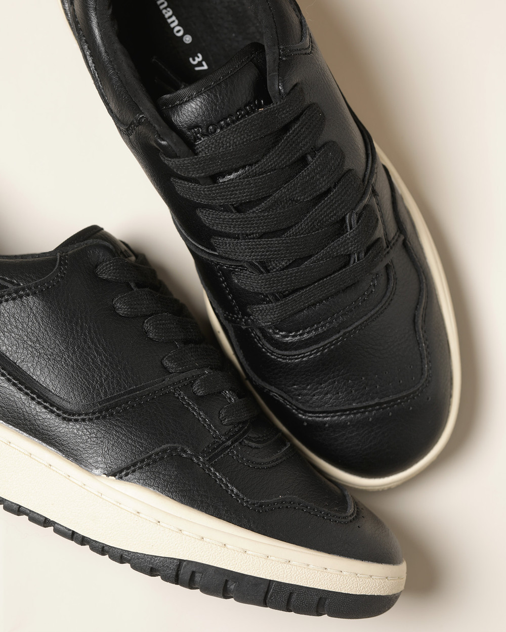 Las zapatillas Romano 250359 Negro están confeccionadas en cuero texturado, destacando por su planta bicolor en beige y negro que aporta un estilo urbano y actual. Versátiles y cómodas, combinan perfecto con jeans, faldas midi o looks streetwear para el día a día y salidas casuales.